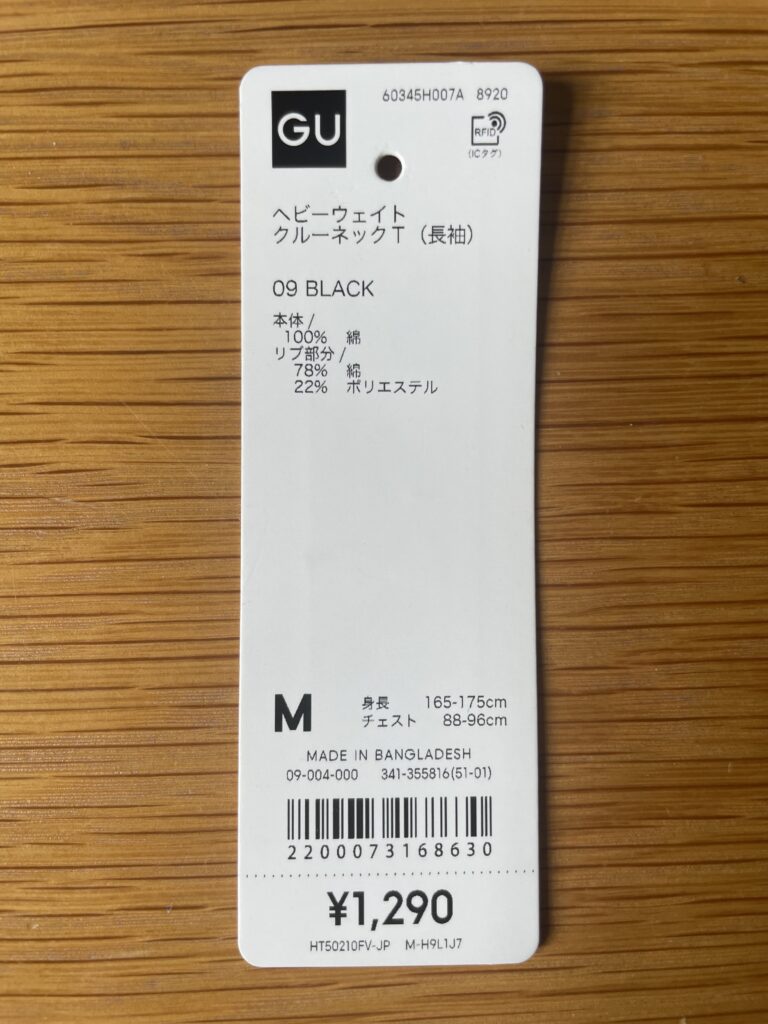 コスパ最高 GU ヘビーウェイトクルーネックT(長袖)
